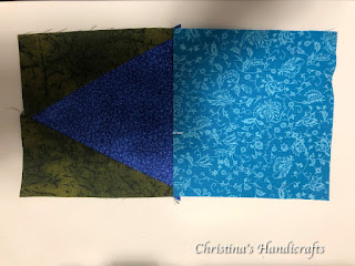 The second part of step six was to put together the blocks. My goal was to only put together one full block, but instead of just one, I got four done, and a fifth close to done, but the last seam still needs to be sewn.